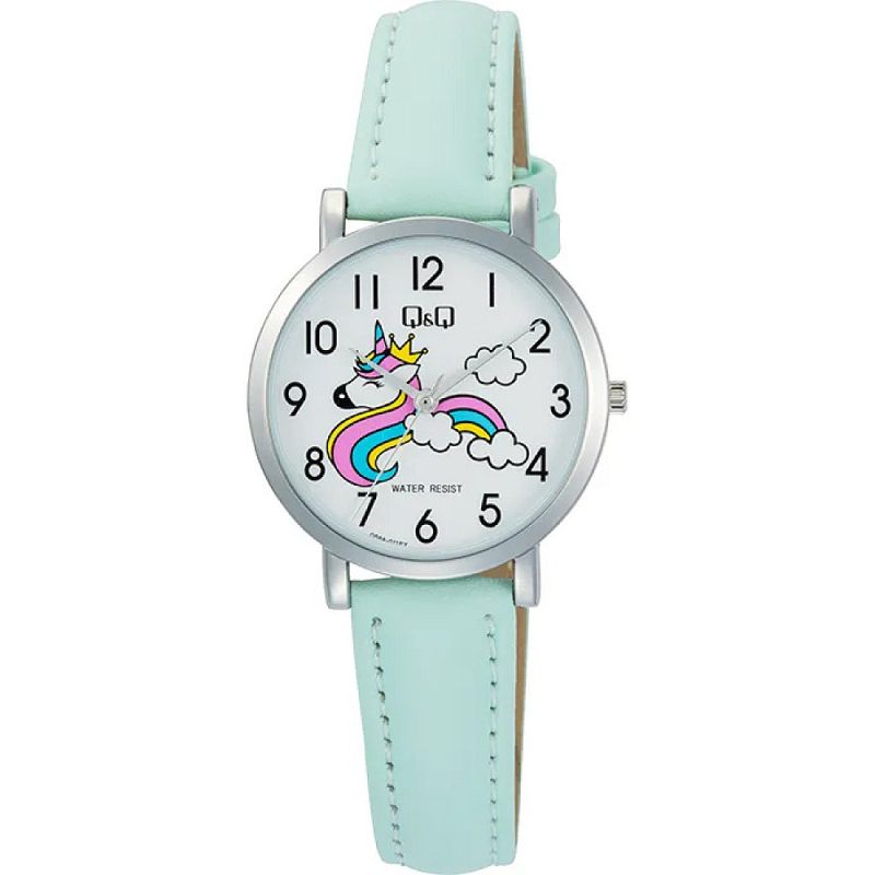 Детски часовник Q&Q Q58A-011PY с Кожена каишка/верижка и Кварцов механизъм