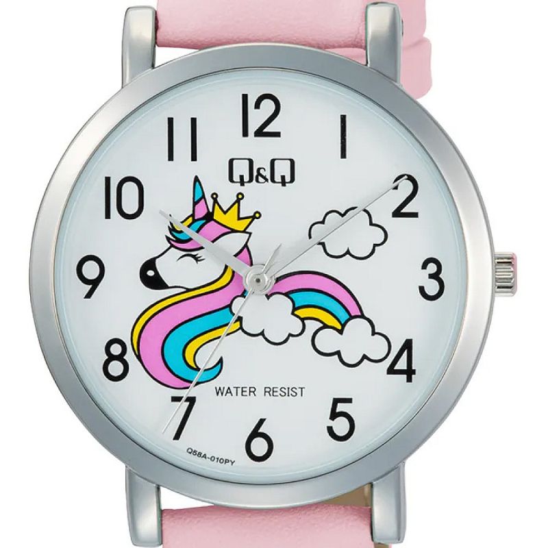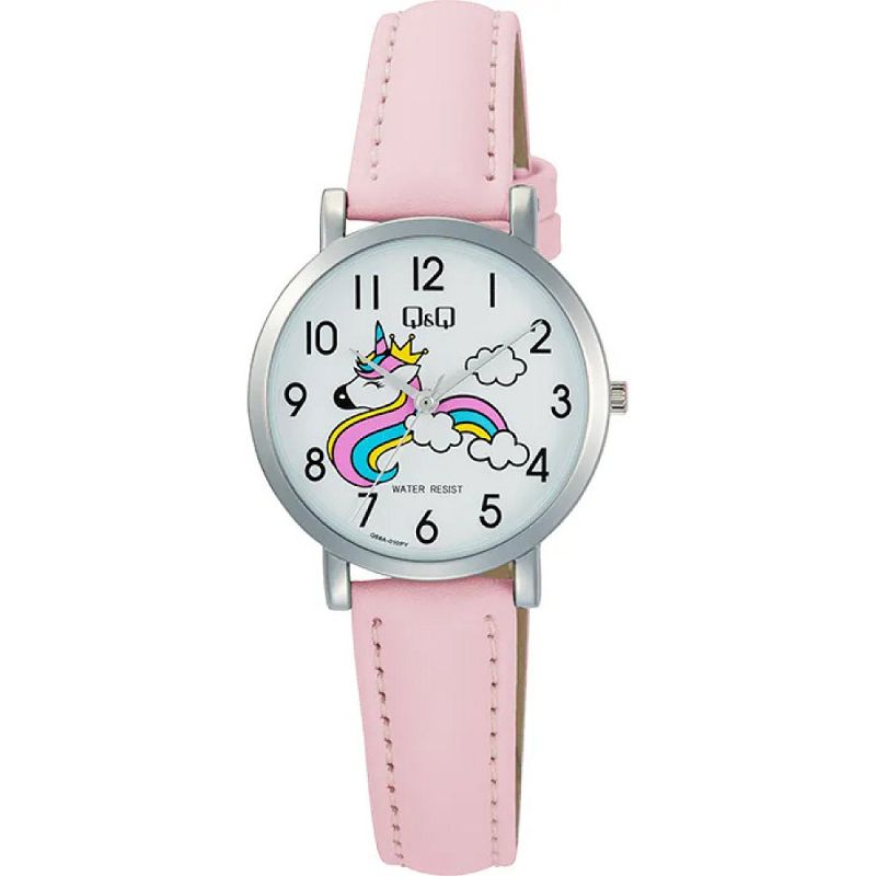 Детски часовник Q&Q Q58A-010PY с Кожена каишка/верижка и Кварцов механизъм