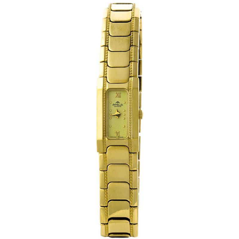 Appella AP-366A-1001 е елегантен дамски часовник,произведен в Швейцария.Корпусът и верижката са от неръждаема висококачествена стомана с PVD златно покритие.Часовникът е с прецизен швейцарски механизъм,с две години гаранция и се доставя в оригинална кутия.Доставката е безплатна за цялата страна и е с включена опция преглед и тест.