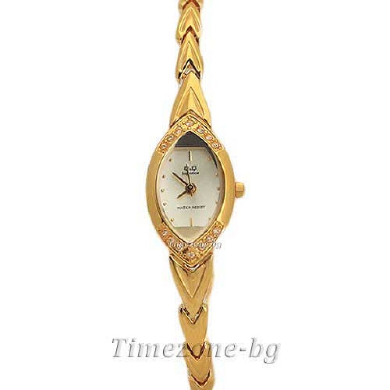 Дамски часовник Q&Q R049-010Y с стомана каишка/верижка и Кварцов механизъм