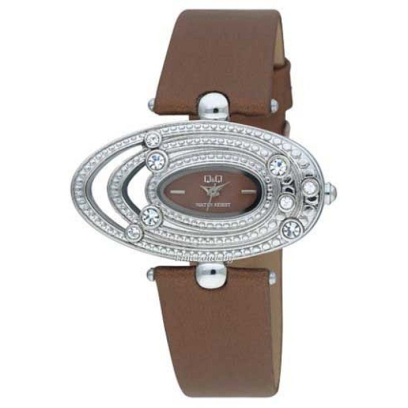 Дамски часовник Q&Q KV09-322Y с кожена каишка/верижка и Кварцов механизъм