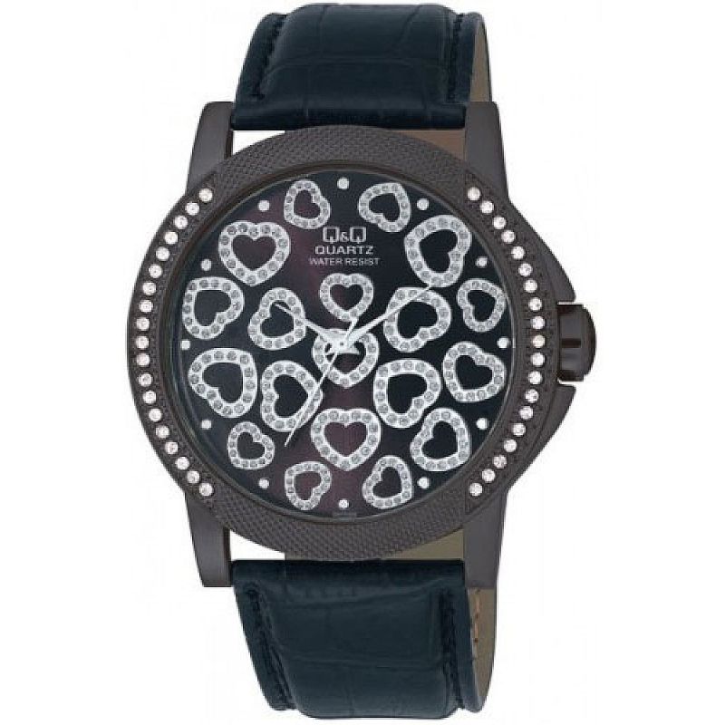 Дамски часовник Q&Q GS17J502Y с кожена каишка/верижка и Кварцов механизъм