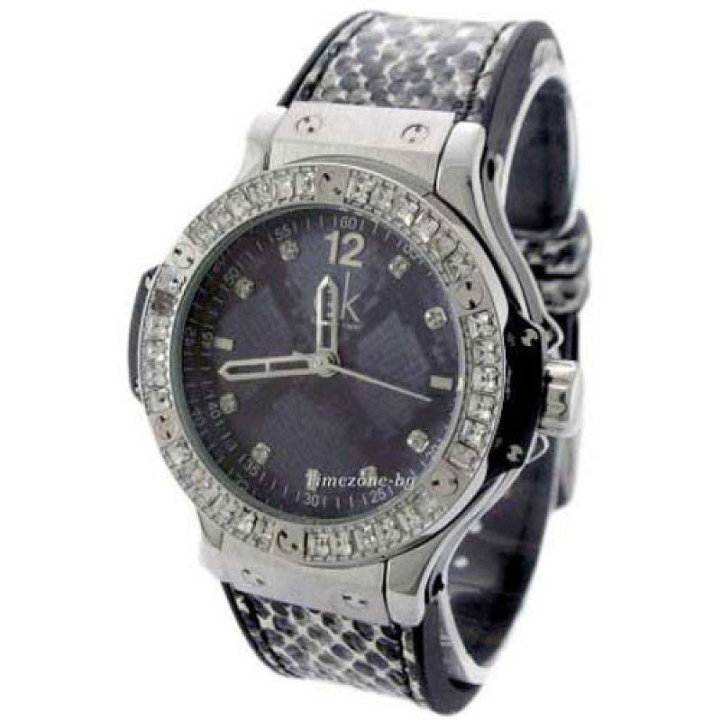 Корпус: стомана - цвят сребро, безел инкрустиран с камъни