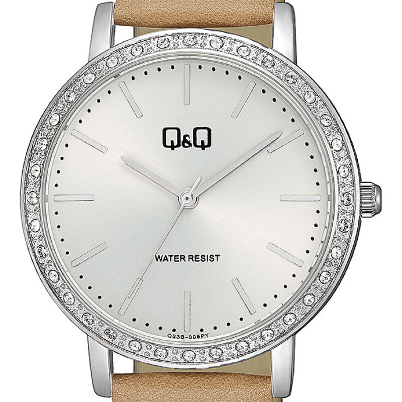 Дамски часовник Q&Q Q33B-006PY с Кожена каишка/верижка и Кварцов механизъм