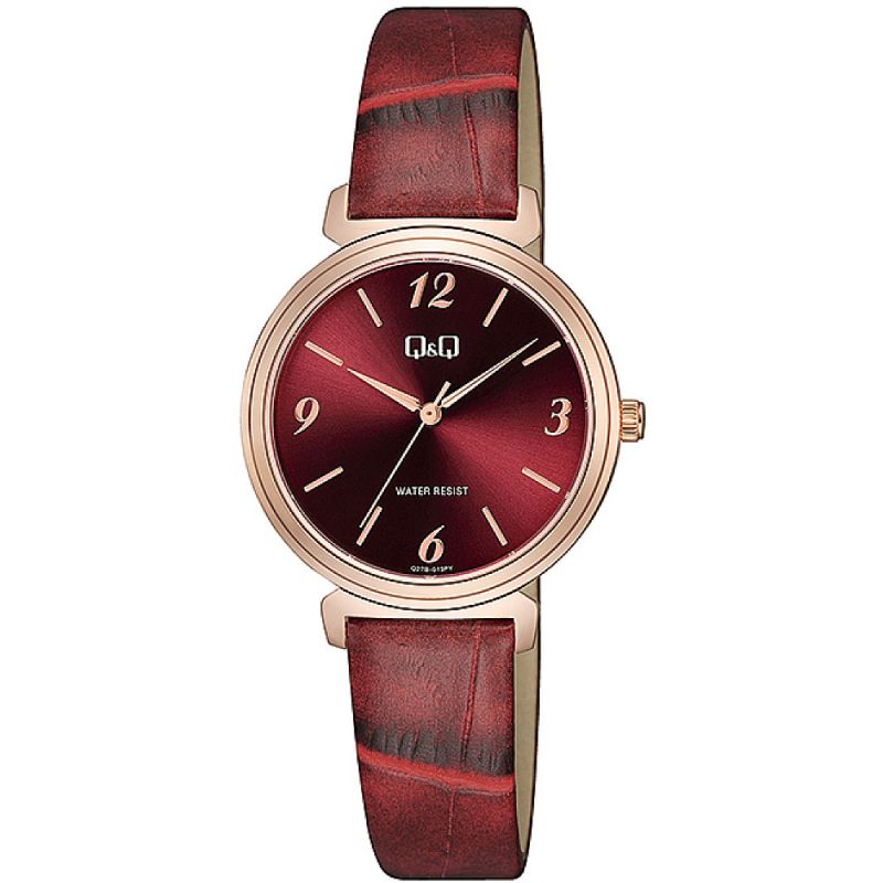 Дамски часовник Q&Q Q27B-013PY с Кожена каишка/верижка и Кварцов механизъм