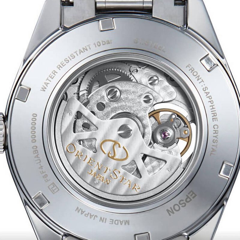 Класически модел мъжки часовник Orient Star с корпус и верижка от неръждаема стомана. Аналогов дисплей с индикатор за резервната мощност, отделен секундарник и отвор, позволяващ да се наблюдава част от механизма. Сапфирено стъкло с антирефлексно покритие. Задвижва се от автоматичен механизъм. Водоустойчивост 10 ATM - позволява мокрене, къпане и плуване във водни басейни.