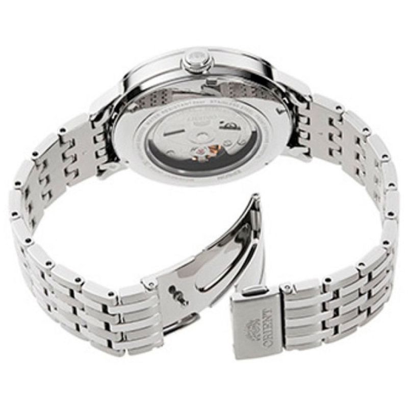 Класически модел мъжки часовник Orient от колекция Contemporary. Корпус и верижка от неръждаема стомана. Аналогов дисплей с показател за дата. Минерално стъкло, устойчиво на надраскване. Автоматичен механизъм Cal.F6722, който може да бъде наблюдаван през прозрачния гръб на часовника. Водоустойчивост 5 ATM - допускат се леки пръски и взимане на душ, не се препоръчва обилно мокрене.