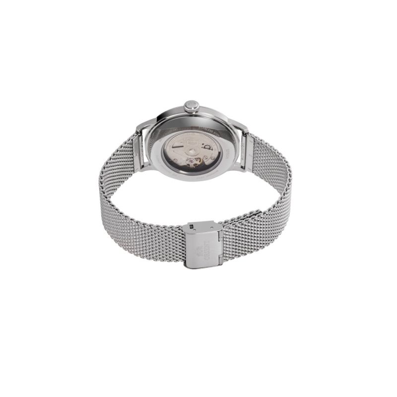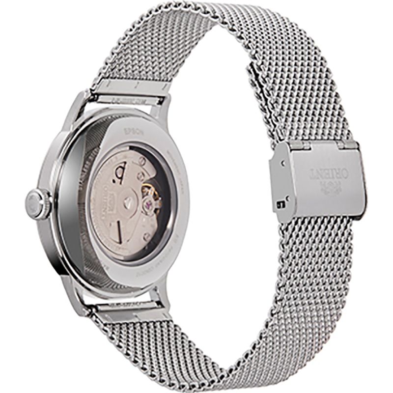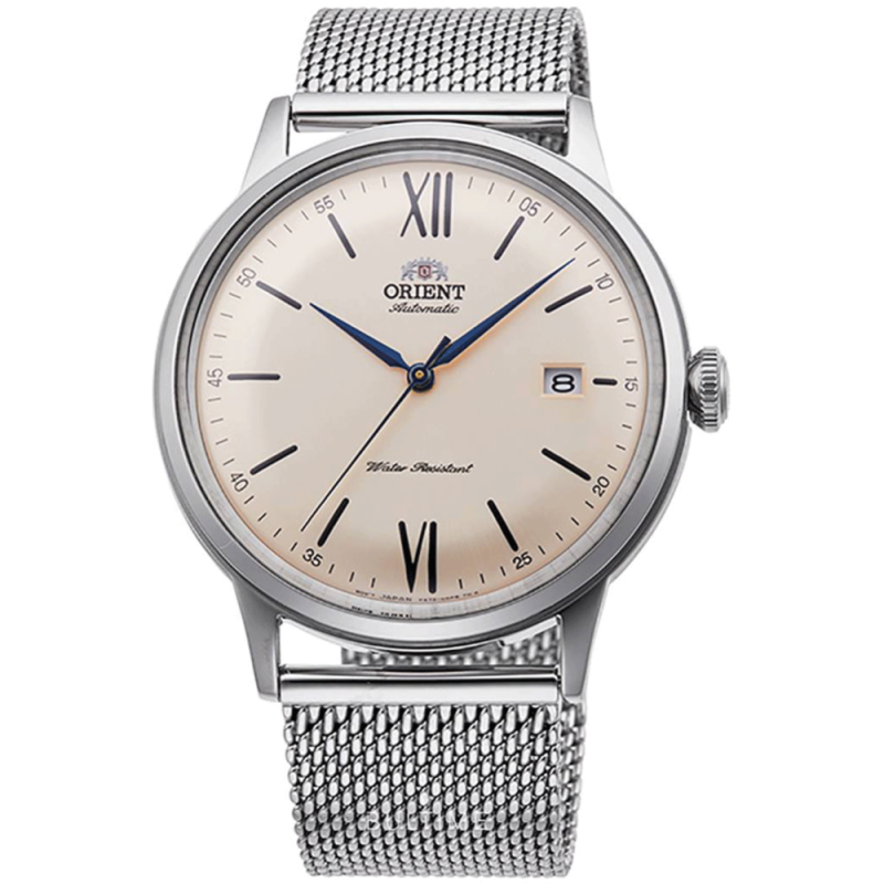 Класически модел мъжки часовник Orient с елегантен дизайн от колекция Classic. Корпус и верижка ситна плетка изработени от неръждаема стомана. Бежов аналогов дисплей с показател за дата. Минерално стъкло, устойчиво на надраскване. Автоматичен механизъм Cal.F6724, който може да бъде наблюдаван през прозрачния гръб. Водоустойчивост 3 ATM - допускат се леки пръски, не се препоръчва обилно мокрене.