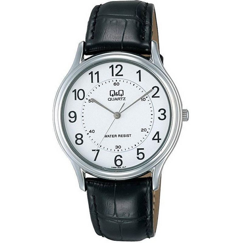 Мъжки часовник Q&Q VG68J304Y с кожена каишка/верижка и Кварцов механизъм