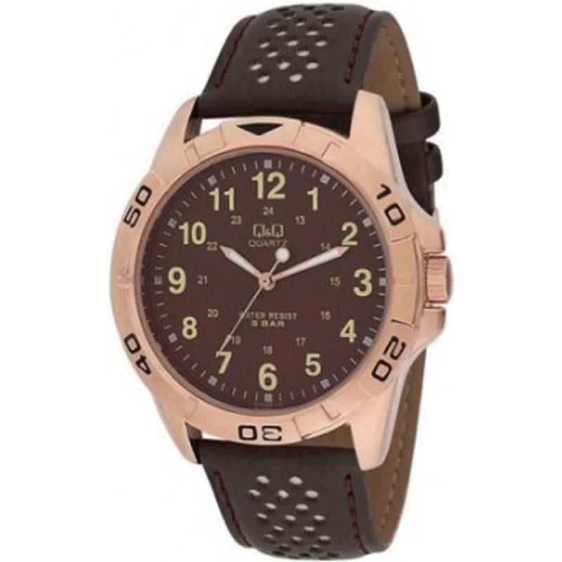 Мъжки часовник Q&Q Q576J809Y с кожена каишка/верижка и Кварцов механизъм