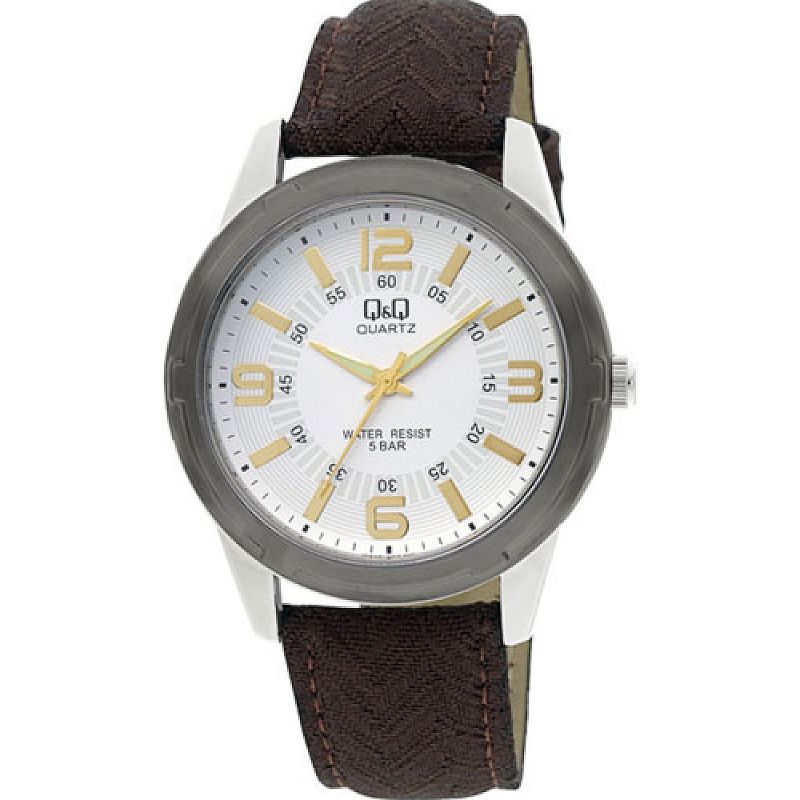 Мъжки часовник Q&Q Q376-504Y с кожена каишка/верижка и Кварцов механизъм