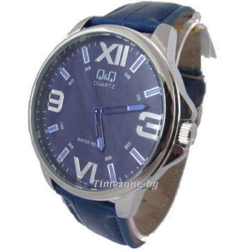 Мъжки часовник Q&Q KW82J823Y с кожена каишка/верижка и Кварцов механизъм