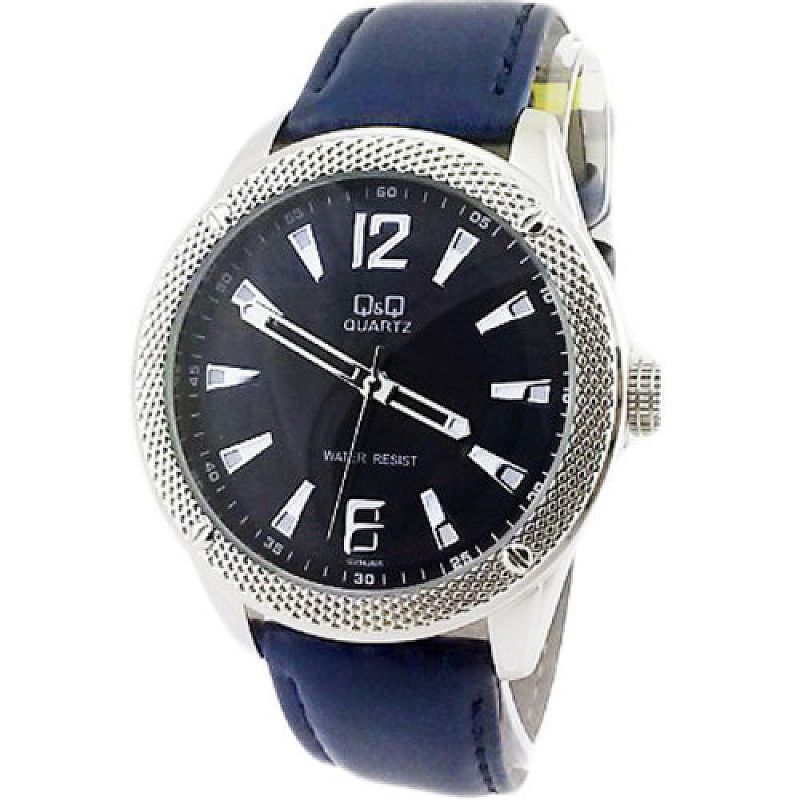 Мъжки часовник Q&Q GU34J805Y с кожена каишка/верижка и Кварцов механизъм