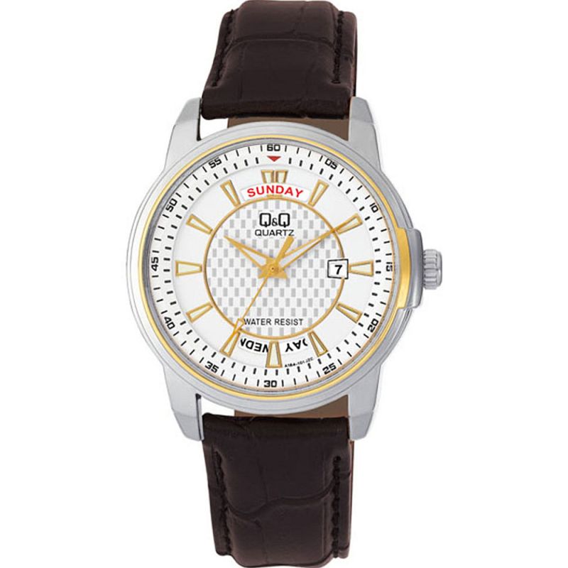 Мъжки часовник Q&Q A184J501Y с кожена каишка/верижка и Кварцов механизъм