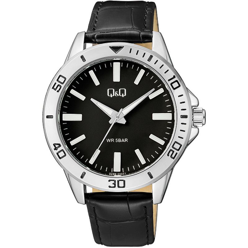 Мъжки часовник Q&Q Q28B-006PY с Кожена каишка/верижка и Кварцов механизъм