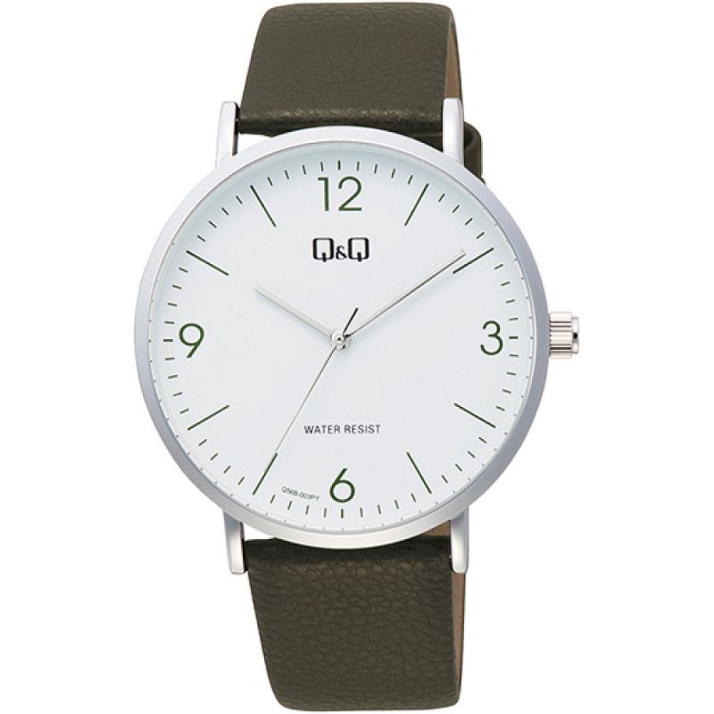 Мъжки часовник Q&Q Q56B-003PY с Кожена каишка/верижка и Кварцов механизъм