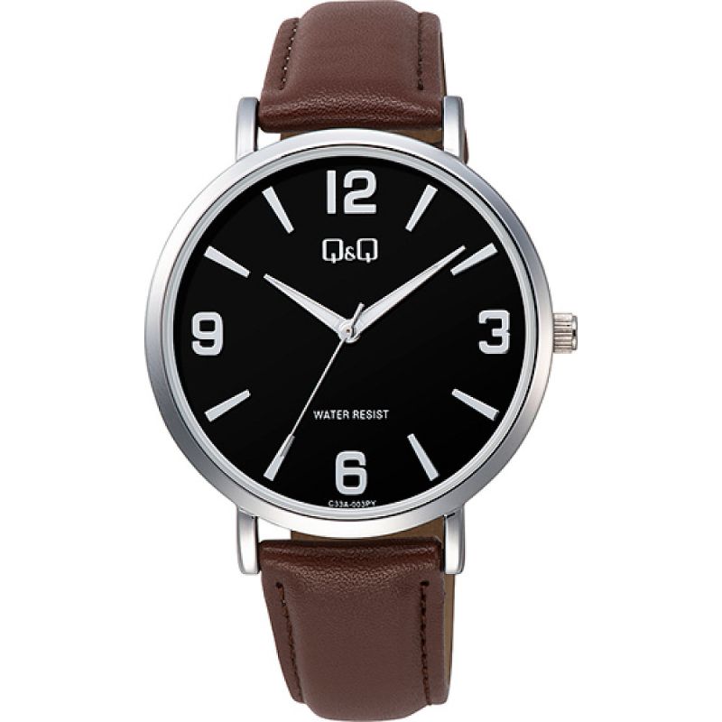 Мъжки часовник Q&Q C33A-003PY с Кожена каишка/верижка и Кварцов механизъм
