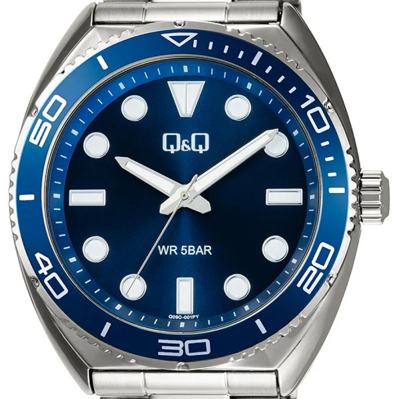 Мъжки часовник Q&Q Q09C-001PY с Стомана каишка/верижка и Кварцов механизъм