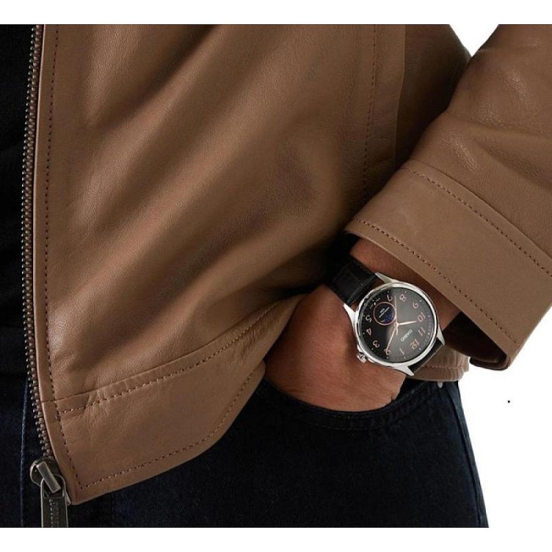 Мъжки часовник Casio MTP-M110L-1AVER с Кожена каишка/верижка и Кварцов механизъм