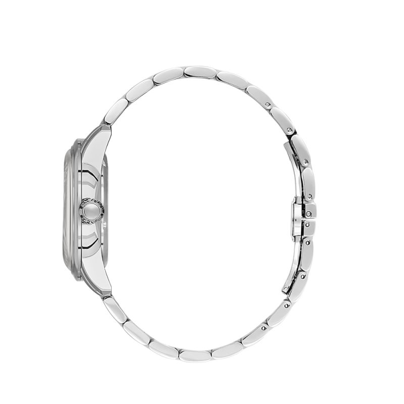 Мъжки часовник с впечатляващ дизайн от колекцията Luxury. Моделът е с корпус и верижка от неръждаема стомана. Дисплеят е аналогов с видим баланс и с показател за 24 часов формат. Стъклото е минерал-кристал. Диаметър на корпуса 42 мм. Часовникът се задвижва от автоматичен механизъм 82S3. Водоустойчивост 5 ATM - допускат се леки пръски и взимане на душ, не се препоръчва обилно мокрене.