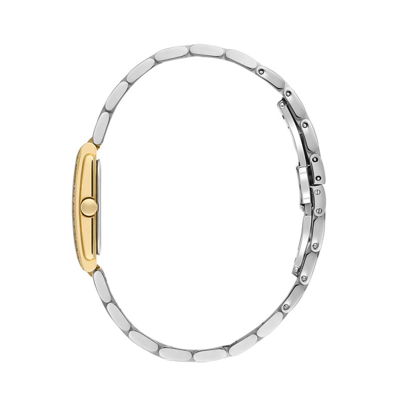 Елегантен дамски часовник с нежна декорация от инкрустирани кристали. Аналогов дисплей в сребрист цвят с луминисцентно покритие на стрелките и индексите. Стъкло минерал-кристал. Корпус и верижка изработени от неръждаема стомана. Задвижва се от кварцов механизъм. Водоустойчивост 5 ATM - допускат се леки пръски и взимане на душ, не се препоръчва обилно мокрене.
