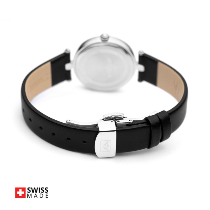 Елегантен дамски часовник Appella L50002.5247DQ с нежен дизайн. Циферблат в сив цвят, украсен с 12 диаманта и допълнен с индикатор за дата. Корпусът от неръждаема стомана. Черна каишка от естествена кожа. Стъкло сапфир-кристал. Задвижва се от кварцов механизъм ETA F04 Swiss Made. Диаметър на корпуса 31 мм. Водоустойчивост 3 ATM - допускат се леки пръски, не се препоръчва обилно мокрене.