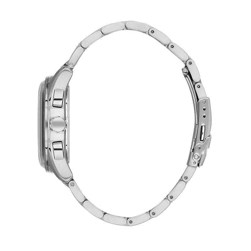 Спортно-елегантен мъжки часовник от колекцията Legend. Сребрист дисплей тип хронограф с показател за дата между четири и пет часа и тахиметрична скала на безела. Стъкло минерал-кристал. Корпус и верижка от неръждаема стомана. Диаметър на корпуса 42 мм. Задвижва се от кварцов механизъм. Водоустойчивост 5 ATM - допускат се леки пръски и взимане на душ, не се препоръчва обилно мокрене.