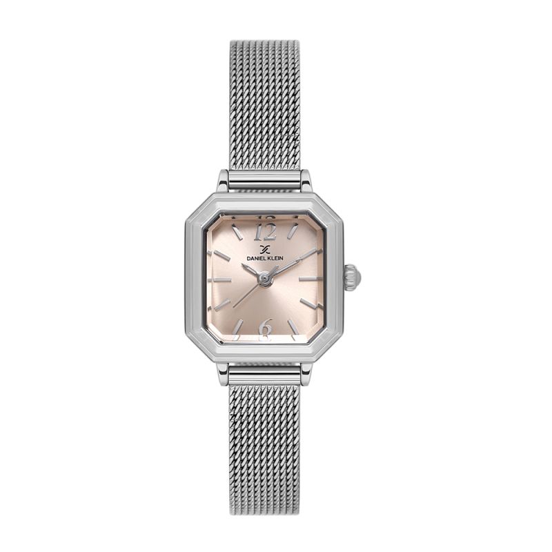 Стилен дамски часовник Daniel Klein от колекцията Premium. Аналогов дисплей с изчистен дизайн. Метален корпус в комбинация с верижка от неръждаема стомана. Стъкло минерал-кристал. Задвижва се от кварцов механизъм VJ21C1. Водоустойчивост 3 ATM - допускат се леки пръски, не се препоръчва обилно мокрене.
