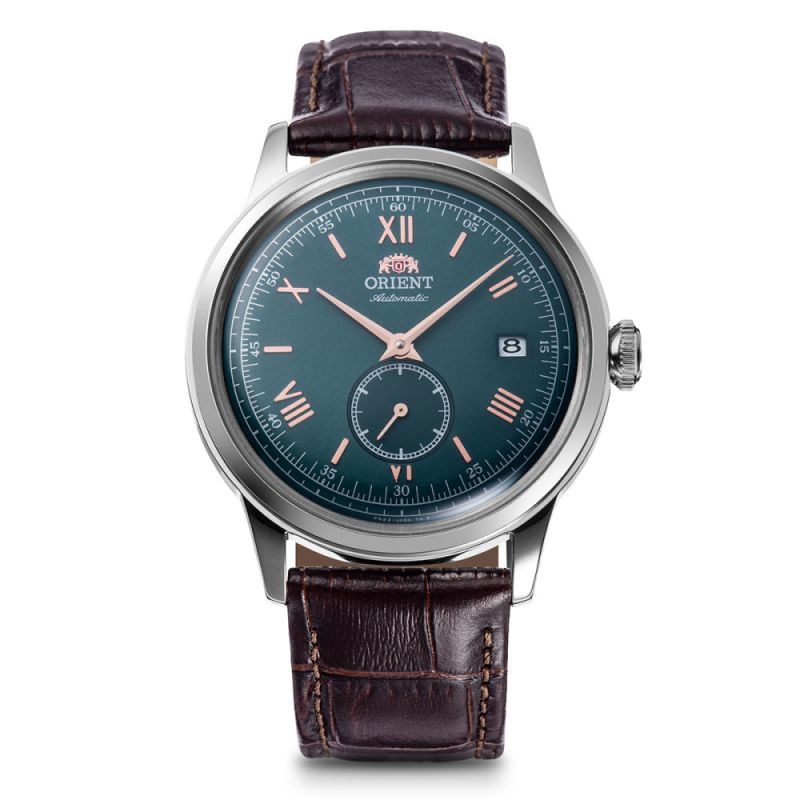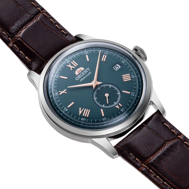 Класически модел мъжки часовник Orient със стилен дизайн. Корпус от неръждаема стомана, съчетан с каишка от естествена кожа. Диаметър на корпуса 38.4 мм. Аналогов дисплей в зелен цвят с показател за дата и отделен секундарник. Стъкло минерал-кристал. Задвижва се от автоматичен механизъм калибър F6222 с 40 часа резервна мощност. Водоустойчивост 3 ATM - допускат се леки пръски, не се препоръчва обилно мокрене.