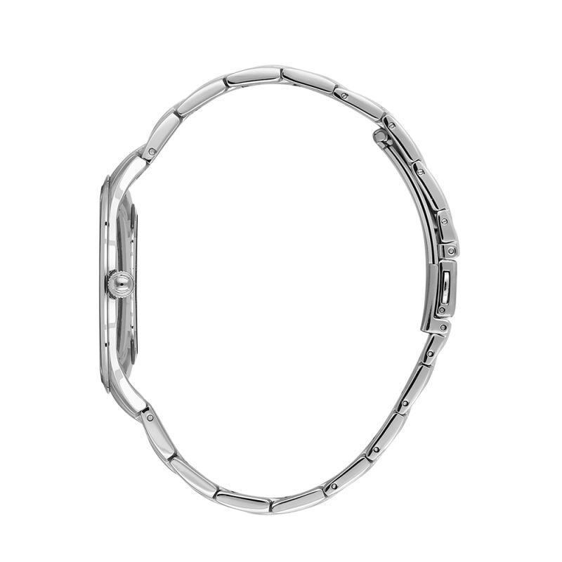 Класичесски модел мъжки часовник със стилен дизайн от колекцията Noble. Корпус и верижка изработени от неръждаема стомана. Сребрист аналогов дисплей с изчистена визия. Стъкло сапфир-кристал. Диаметър на корпуса 41 мм. Задвижва се от кварцов механизъм VX50. Водоустойчивост 5 ATM - допускат се леки пръски и взимане на душ, не се препоръчва обилно мокрене.