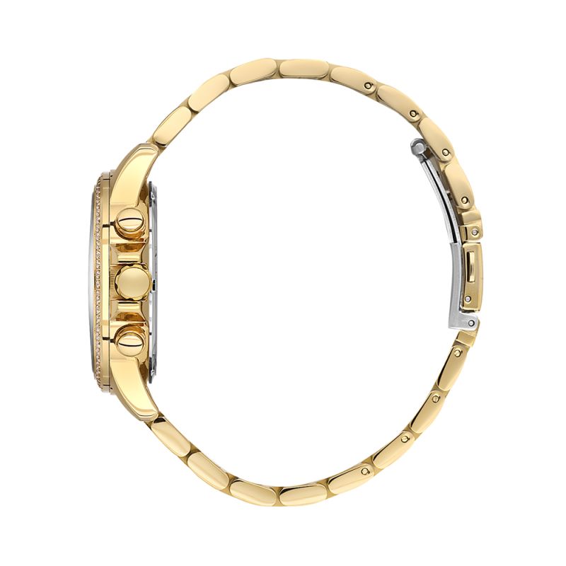 Красив модел дамски часовник от колекцията Unique. Корпус и верижка изработени от неръждаема стомана. Диаметър на корпуса 38 мм. Мултифункционален дисплей с показатели за дата, ден от седмицата и двойно време. Часовникът е с декорация от нежни кристали по безела. Стъкло минерал-кристал. Задвижва се от кварцов механизъм JP25-4.5. Водоустойчивост 5 ATM - допускат се леки пръски и взимане на душ, не се препоръчва обилно мокрене.