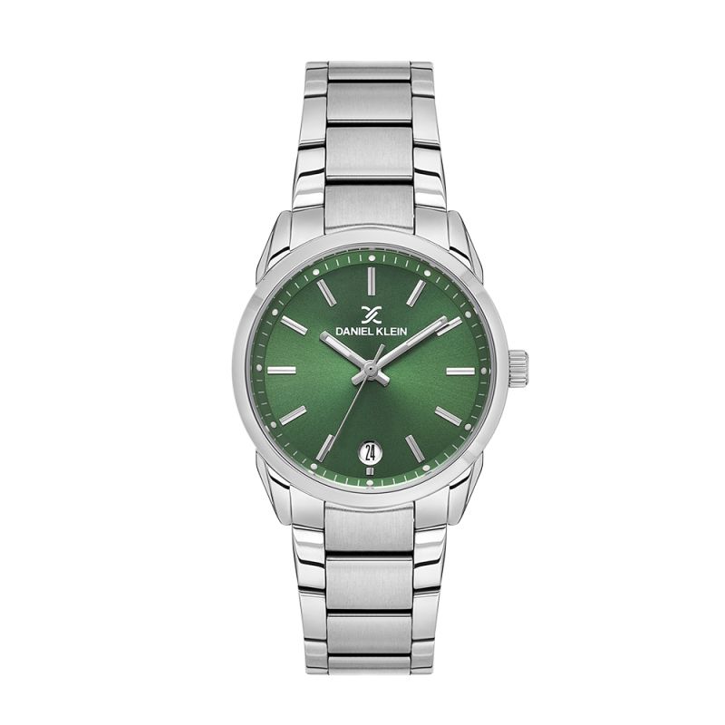 Класически модел дамски часовник Daniel Klein с изчистен дизайн от колекцията Premium. Метален корпус в комбинация с верижка от неръждаема стомана. Аналогов дисплей в тъмнозелен цвят с показател за дата. Стъкло минерал-кристал. Часовникът се задвижва от кварцов механизъм VX32E12. Водоустойчивост 3 ATM - допускат се леки пръски, не се препоръчва обилно мокрене.