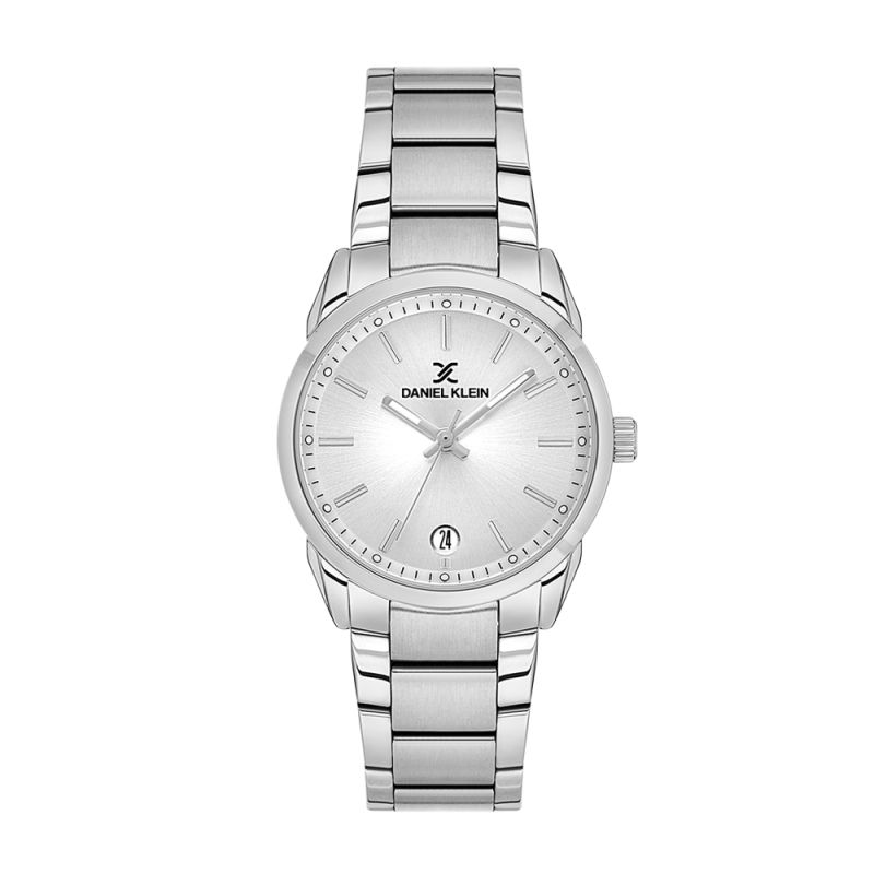Класически модел дамски часовник Daniel Klein с изчистен дизайн от колекцията Premium. Метален корпус в комбинация с верижка от неръждаема стомана. Аналогов дисплей в сребрист цвят с показател за дата. Стъкло минерал-кристал. Часовникът се задвижва от кварцов механизъм VX32E12. Водоустойчивост 3 ATM - допускат се леки пръски, не се препоръчва обилно мокрене.
