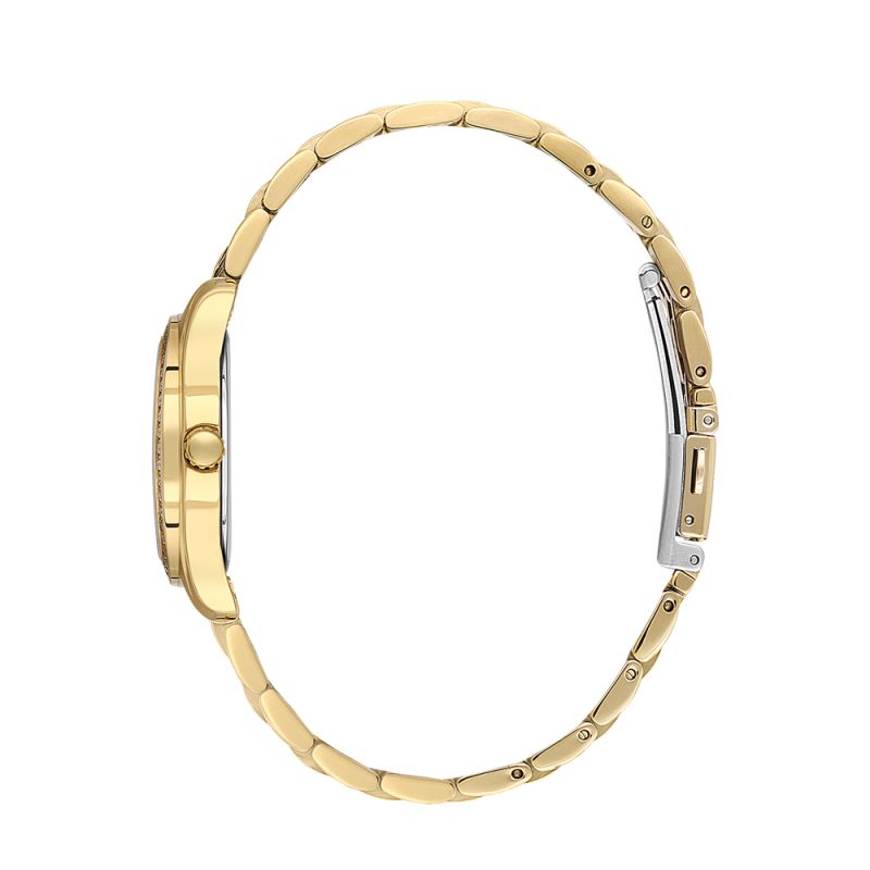Нежен дамски часовник с красива визия от колекцията Unique. Моделът е със седефен аналогов дисплей, декориран с кристали по часовите маркери и по безела. Корпусът и верижката са изработени от неръждаема стомана. Стъклото е минерал-кристал. Задвижва се от кварцов механизъм 2035. Водоустойчивост 5 ATM - допускат се леки пръски и взимане на душ, не се препоръчва обилно мокрене.