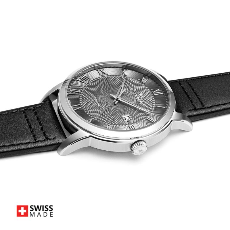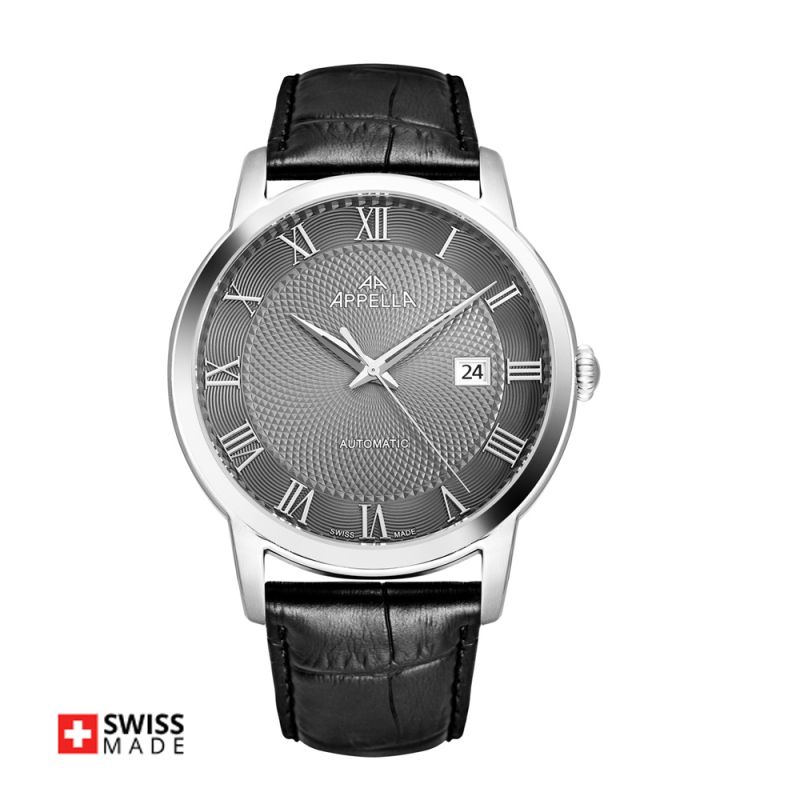 Мъжки часовник Appella L70007.5237A впечатлява със своята елегантна визия. Корпусът е с диаметър 43 мм. и дебелина 10 мм, изработен от неръждаема стомана. Каишката е от естествена кожа в черен цвят. Стъклото е сапфир-кристал. Дисплеят е аналогов в сив цвят с показател за дата. Часовникът се задвижва от автоматичен механизъм RONDA 150 Swiss Made. През прозрачния гръб на корпуса може да се наблюдава механизма на часовника. Водоустойчивост 5 ATM - допускат се леки пръски и взимане на душ, не се препоръчва обилно мокрене.