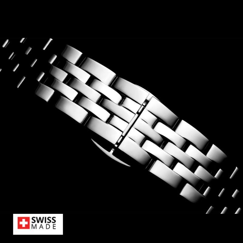 Дамски часовник Appella L50023.5163DQ привлича вниманието със своята елегантност. Корпусът и верижката са изработени от неръждаема стомана. Корпусът е украсен с осем диаманта. Моделът е със сребрист циферблат и стъкло сапфир-кристал с антирефлетсно покритие. Задвижва се от кварцов механизъм ETA F04/ RONDA 785 Swiss Made. Водоустойчивост 3 ATM - допускат се леки пръски, не се препоръчва обилно мокрене.