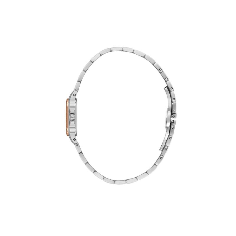 Дамски часовник Santa Barbara Polo & Racquet Club със стилен дизайн от колекцията Unique. Моделът е със сребрист аналогов дисплей и декорация от нежни кристали върху част от индексите и безела. Стъкло минерал-кристал. Корпус и верижка изработени от неръждаема стомана. Задвижва се от кварцов механизъм с калибър VX10A1. Водоустойчивост 5 ATM - допускат се леки пръски и взимане на душ, не се препоръчва обилно мокрене.
