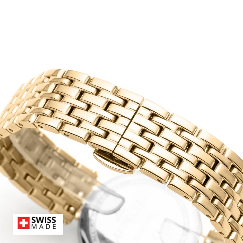 Стилен дамски часовник L32001.1113Q на швейцарската марка Appella. Циферблат в сребрист цвят с индикатор за дата. Корпус и верижка изработени от неръждаема стомана. Стъкло сапфир-кристал. Задвижва се от кварцов механизъм ETA F04 Swiss Made. Диаметър на корпуса 29 мм. Водоустойчивост 3 ATM - допускат се леки пръски, не се препоръчва обилно мокрене.