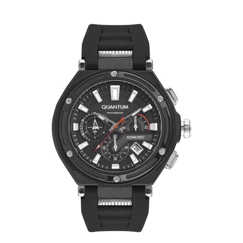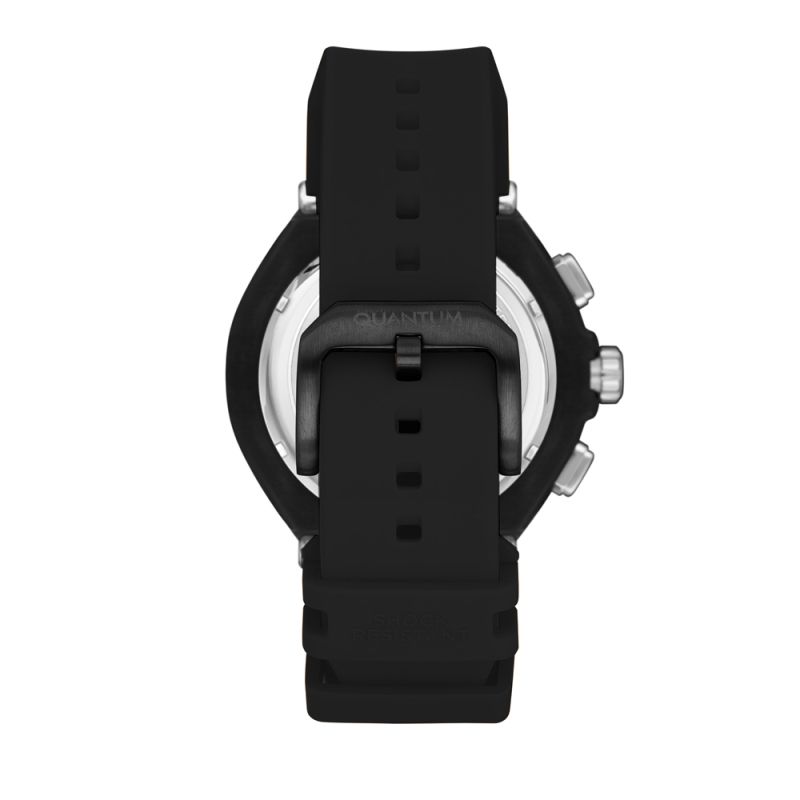 Мъжки часовник Quantum със спортен дизайн. Дисплеят е хронограф с луминесцентно покритие върху стрелките и индексите. Стъкло минерал-кристал с антирефлексно покритие. Корпус от неръждаема стомана в комбинация със силиконова каишка. Диаметър на корпуса 50 мм. Часовникът се задвижва от кварцов механизъм с калибър VR32B15. Водоустойчивост 10 ATM - позволява мокрене, къпане и плуване във водни басейни.