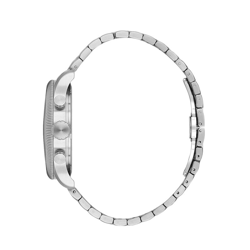 Мъжки часовник с модерен дизайн от колекцията Legend. Корпус и верижка от неръждаема стомана. Диаметър на корпуса 42 мм. Дисплей хронограф с показател за дата и тахиметрична скала. Стъкло минерал-кристал. Часовникът се задвижва от кварцов механизъм TMI-VD53. Водоустойчивост 5 ATM - допускат се леки пръски и взимане на душ, не се препоръчва обилно мокрене.