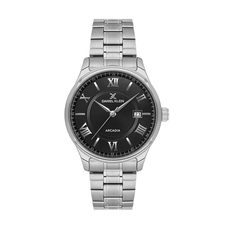 Класически модел мъжки часовник Daniel Klein от колекцията Arcadia. Дисплеят е аналогов с показател за дата. Корпусът е изработен от метал. Верижката е от неръждаема стомана. Стъклото е минерал-кристал. Часовникът се задвижва от кварцов механизъм VX42E11. Диаметър на корпуса 41 мм. Водоустойчивост 5 ATM - допускат се леки пръски и взимане на душ, не се препоръчва обилно мокрене.