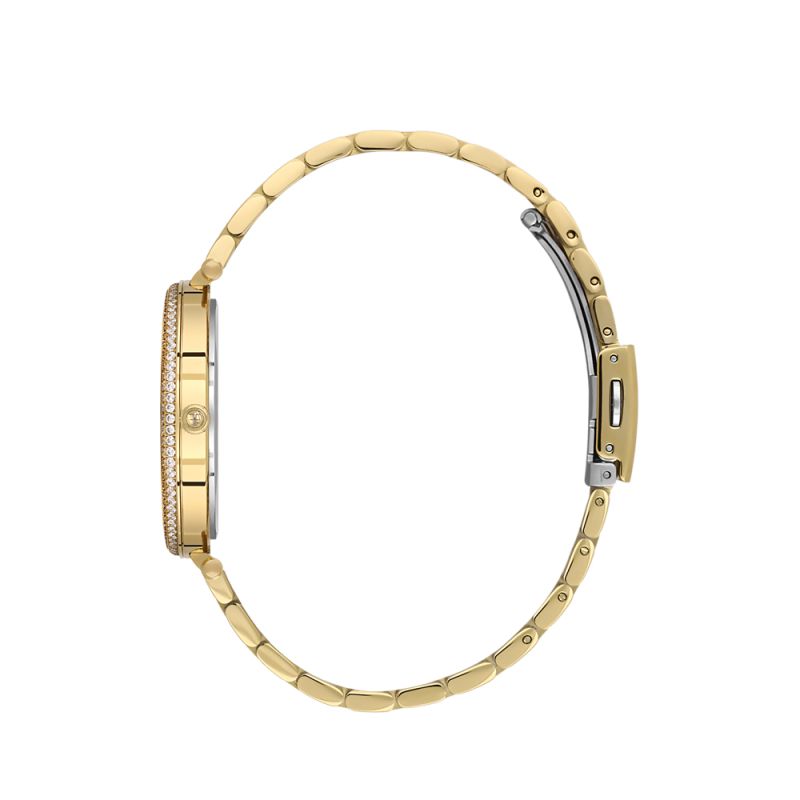 Красив дамски часовник Freelook със стилен дизайн от колекцията Lumiere. Моделът е с аналогов дисплей и декорация от кристали по безела. Стъкло минерал-кристал. Корпус и верижка изработени от неръждаема стомана. Диаметър на корпуса 38 мм. Часовникът се задвижва от кварцов механизъм. Водоустойчивост 5 ATM - допускат се леки пръски и взимане на душ, не се препоръчва обилно мокрене.