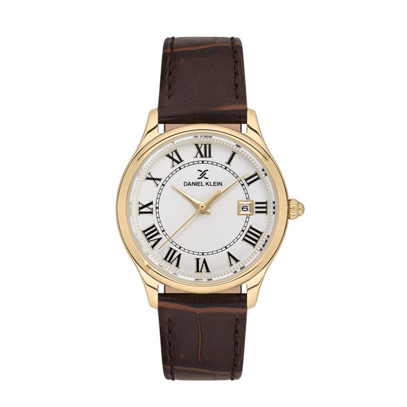 Дамски часовник Daniel Klein от колекцията Premium. Метален корпус в комбинация с каишка от естествена кожа. Аналогов дисплей с показател за дата. Стъкло минерал-кристал. Диаметър на корпуса 32 мм. Часовникът се задвижва от кварцов механизъм. Водоустойчивост 3 ATM - допускат се леки пръски, не се препоръчва обилно мокрене.