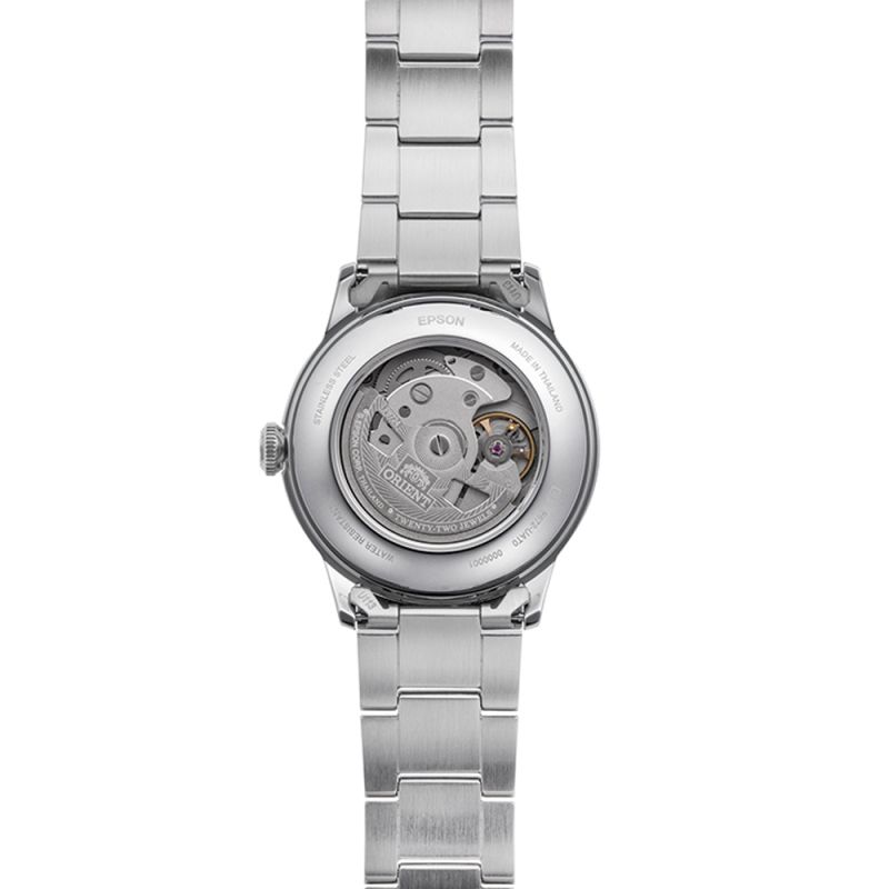 Класически модел мъжки часовник Orient със семпъл дизайн от колекцията Classic. Моделът е с характерните за серията традиционен класически циферблат, куполообразното стъкло с ретро усещане и деликатен дизайн на корпуса с тънки издатини. Часовникът е с автоматичен (с ръчно навиване) механизъм F6724 със стабилната точност, варираща между +25 секунди до –15 секунди на ден, съчетана с 40-часов резерв на мощността, което го прави идеален за ежедневна употреба. Красивият завършек на механизма, може да бъде видян през прозрачния гръб. Корпусът и верижката са изработени от неръждаема стомана. Водоустойчивост 3 ATM - допускат се леки пръски, не се препоръчва обилно мокрене.