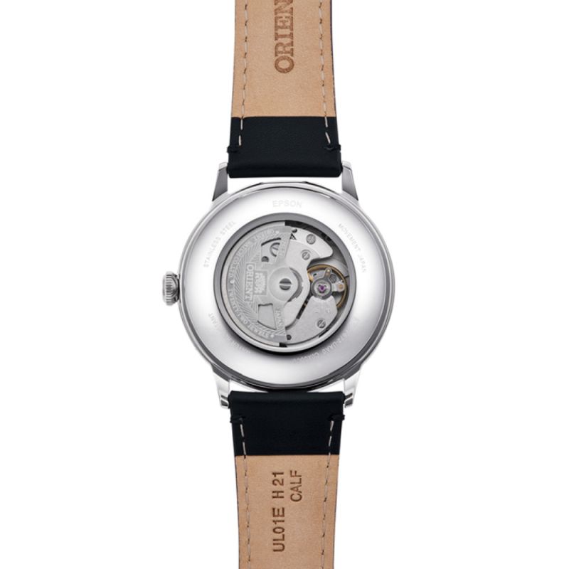 Мъжки часовник Orient с елегантен дизайн. Моделът е с автоматичен Cal.F6724 механизъм, който може да бъде наблюдаван през прозрачния гръб. Корпус изработен от неръждаема стамана, съчетан с черна каишка от естствена кожа. Стъкло минерал-кристал. Аналогов дисплей с показател за дата. Водоустойчивост 3 ATM - допускат се леки пръски, не се препоръчва обилно мокрене.