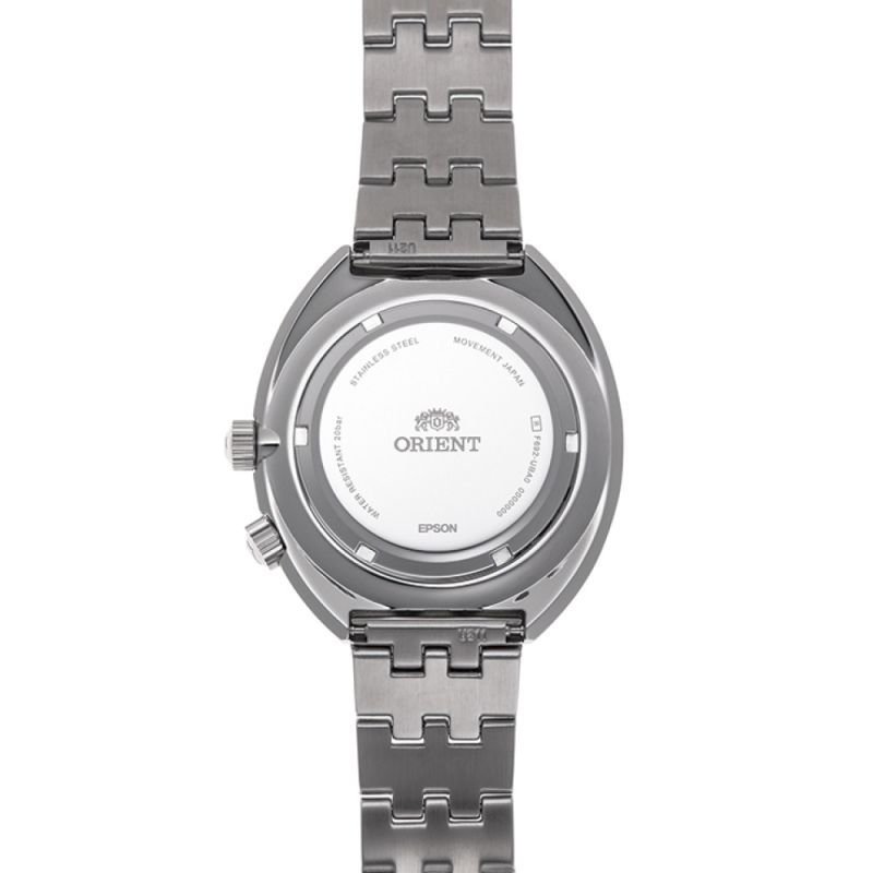 Мъжки часовник, който следва отличителния дизайн на Orient от 60-те и 70-те години на миналия век, но с модерен привкус. Моделът е с вътрешен автоматичен механизъм с калибър F6922, осигуряващ стабилна точност. Часовникът е с корпус и верижка от неръждаема стомана. Дисплеят е аналогов с показател за ден и дата. Луминесцентно покритие върху стрелките и индексите. Водоустойчивост 20 ATM - позволява мокрене, къпане, плуване и гмуркане във водни басейни.