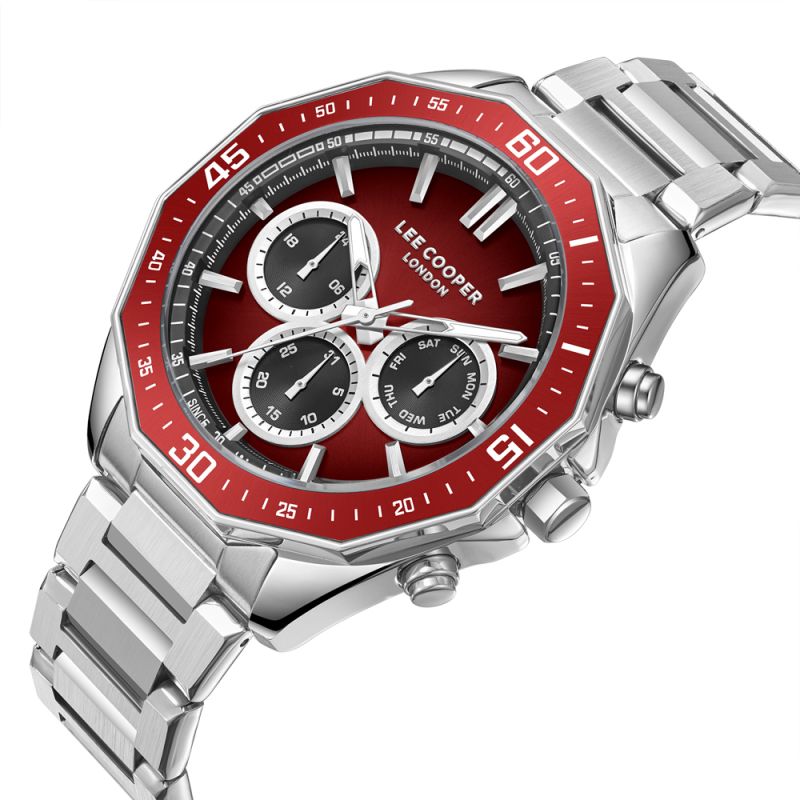 Спортно-елегантен мъжки часовник Lee Cooper с мултифункционален дисплей. Моделът е с корпус от супер метал и верижка от неръждаема стомана. Стъкло минерал-кристал. Задвижва се от кварцов механизъм. Водоустойчивост 5 ATM - допускат се леки пръски и взимане на душ, не се препоръчва обилно мокрене.