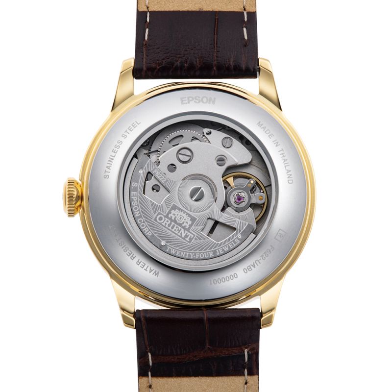 Класически модел мъжки часовник Orient със семпъл дизайн. Корпус от неръждаема стомана, съчетан с каишка от естествена кожа. Аналогов дисплей с показател за дата и отделен секундарник. Стъкло минерал-кристал. Автоматичен механизъм Orient Calibre F6222 с 40 часа резервна мощност. Водоустойчивост 3 ATM - допускат се леки пръски, не се препоръчва обилно мокрене.
