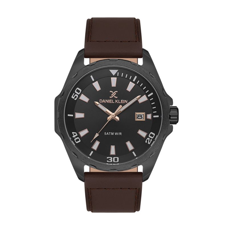 Мъжки часовник Daniel Klein от колекцията Premium. Моделът е с метален корпус и кожена каишка. Аналогов дисплей с показател за дата. Стъкло минерал-кристал. Кварцов механизъм. Водоустойчивост 5 ATM - допускат се леки пръски и взимане на душ, не се препоръчва обилно мокрене.