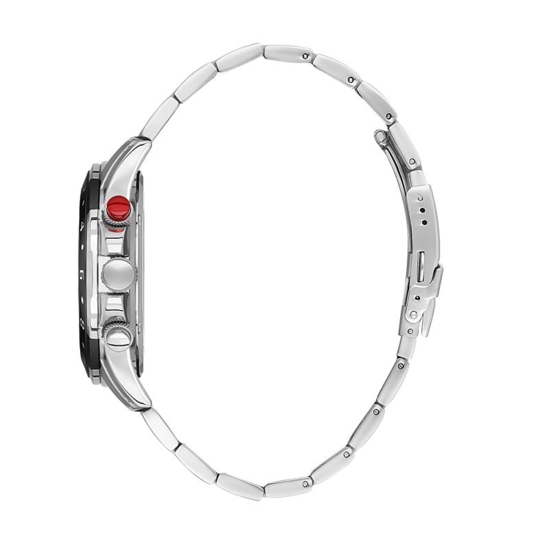 Мъжки часовник Daniel Klein със спортно-ежедневен дизайн от колекцията Exclusive. Черен мултифункционален дисплей със сребристи детайли. Стъкло минерал-кристал. Метален корпус в комбинация с верижка от неръждаема стомана. Задвижва се от кварцов механизъм. Водоустойчивост 5 ATM - допускат се леки пръски и взимане на душ, не се препоръчва обилно мокрене.